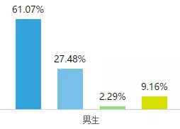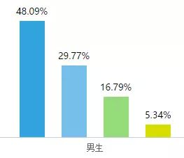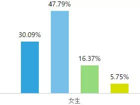 男生平均成绩能达到80分的只占不到总数的38%,而女生平均分在80分以上的比例则在52%以上;