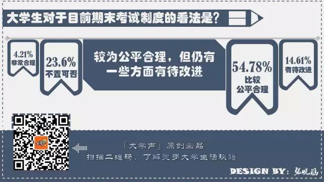 所以我们上周设计了调查问卷,想了解一下同学们的期末考试是采取什么样的形式,监考是不是严格,需不需要熬夜复习,以及对大学里永远的热门话题——挂科与作弊的看法。以下是得出的调查报告: