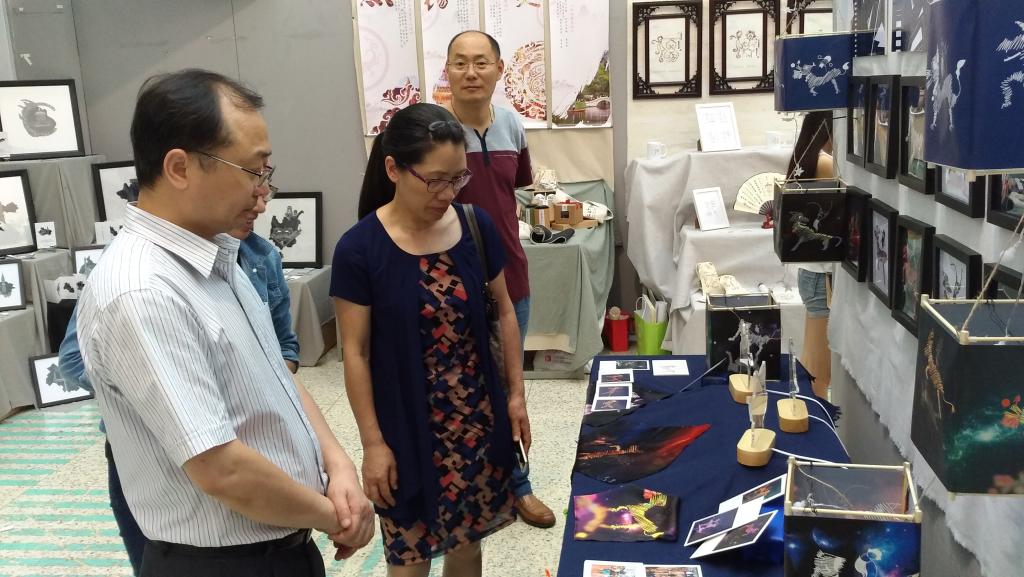 得知艺术学院2017届毕业设计展正在开展,沈兴华饶有兴趣地进行了参观,他从苍梧校区艺术楼的展厅看起,一直看到连云港市图书馆展区,他一件一件作品认真地看,遇到感兴趣的作品,就询问设计者和指导教师很多问题,进行深度交流。沈兴华表示,看了艺术学院的毕业设计展,发现了很多可以合作的项目,他对毕业生设计的“姑苏十二娘”等作品表达出了强烈的合作兴趣,认为可以很快商业化。