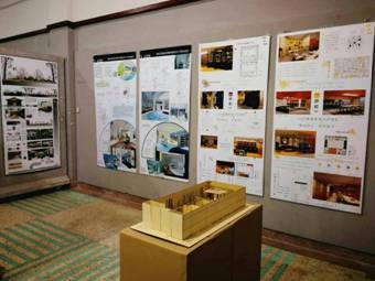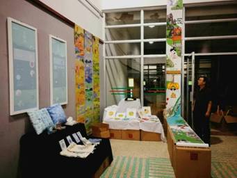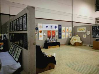 选择艺术学院收获的不仅仅是一门创作与生活的知识技能,也是用适当的手段把自己对某些特定事物的看法和感受表达出来的一种自身的审美角度。平淡无奇的展厅背景通过师生们的一双双充沛感情的巧手,搭配出对世界色彩无限的激情与想象力。活跃的颜色、色调与场景成为了淮海园中一道独特的风景线。