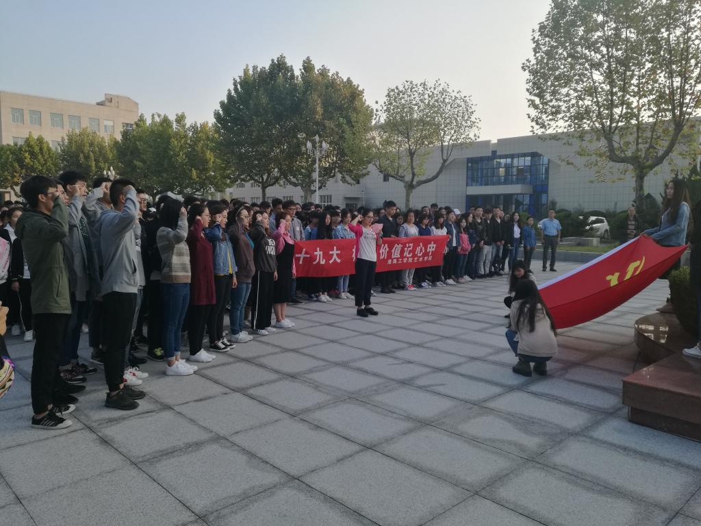 9月30日晨,艺术学院在苍梧校区主楼前广场举行“青春喜迎十九大 核心价值记心中”主题升旗仪式,庆祝新中国成立68周年。艺术学院党政领导、辅导员、班主任及14、15、16级全体学生参加了主题教育活动。
