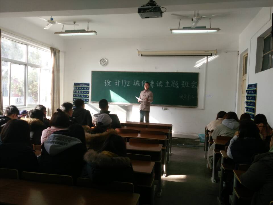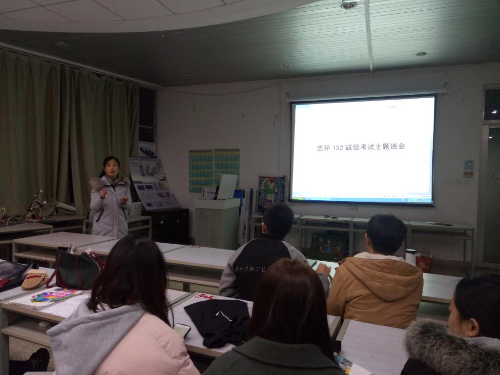 主题教育活动由各班班主任主讲,学习《淮海工学院学生违纪处分办法》、签订《诚信考试承诺书》等,使同学们了解我校考试管理的相关规定,对考试中可能出现的违纪问题进行预警,提高了同学们对考试作弊危害性的认识,让同学们充分认识到考试违纪的严重后果。此外,艺术学院还在微信公众平台进行了诚信考试宣传,号召大家行动起来,相互监督,考出真才实学,考出诚信风格,营造公平公正的考试环境。
