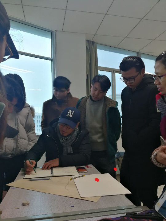 徐海先生作为著名原画与壁画设计师,有着多年在动漫公司从事原画创作的经验,其参与创作的“动画清明上河图”(上海动漫博物馆馆藏),同时他还是国内多部大型动漫影视作品的主创成员:包括部分国产动画如西游记、哪吒传奇、大英雄狄青、我为歌狂;美国动画片番茄酱,口袋里的龙;中法合资动画片小魔女蒙娜,马丁的早晨,中华小子,太空牛仔,大尾巴马修等。徐海先生就其参与创制的这些具体讲解了原画构图、动作分解、创作立意等问题,并以自己的艺术创作经历与学生交流如何循序渐进进行原画学习,如何确定创作主题,如何提升原画创作品味等问题,并为同学们作现场绘画示范。
