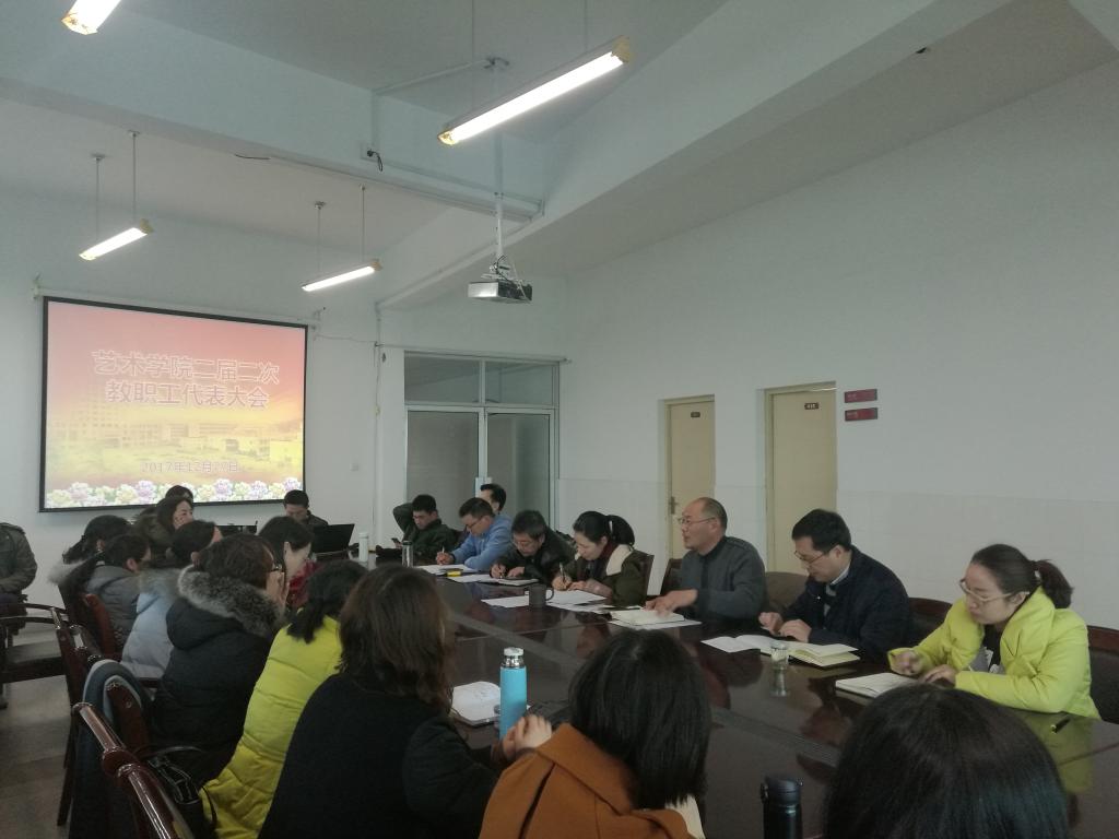 12月27日下午,艺术学院在艺术楼会议室召开二届二次教职工代表大会,艺术学院全体党政领导、校工会委员黄金虎及艺术学院全体教职工参加了此次大会,会议由艺术学院党总支副书记李春主持。