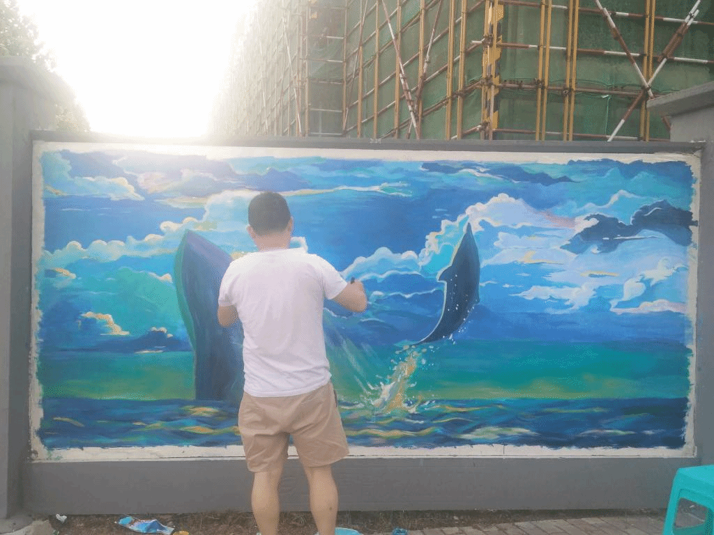 早在一个月前,艺术学院在苍梧校区D区宿舍外墙的墙绘引起了非常好的反响,老师们由此产生提议,能不能在施工区外墙上也开展类似的活动?艺术学院领导班子一致认为,现在正处于创建江苏海洋大学的关键时期,在施工墙上搞墙绘,一来是一场专业技能的大练兵,二是进一步发挥艺术设计专业在校园文化氛围营造方面的作用,为大学创建助力!