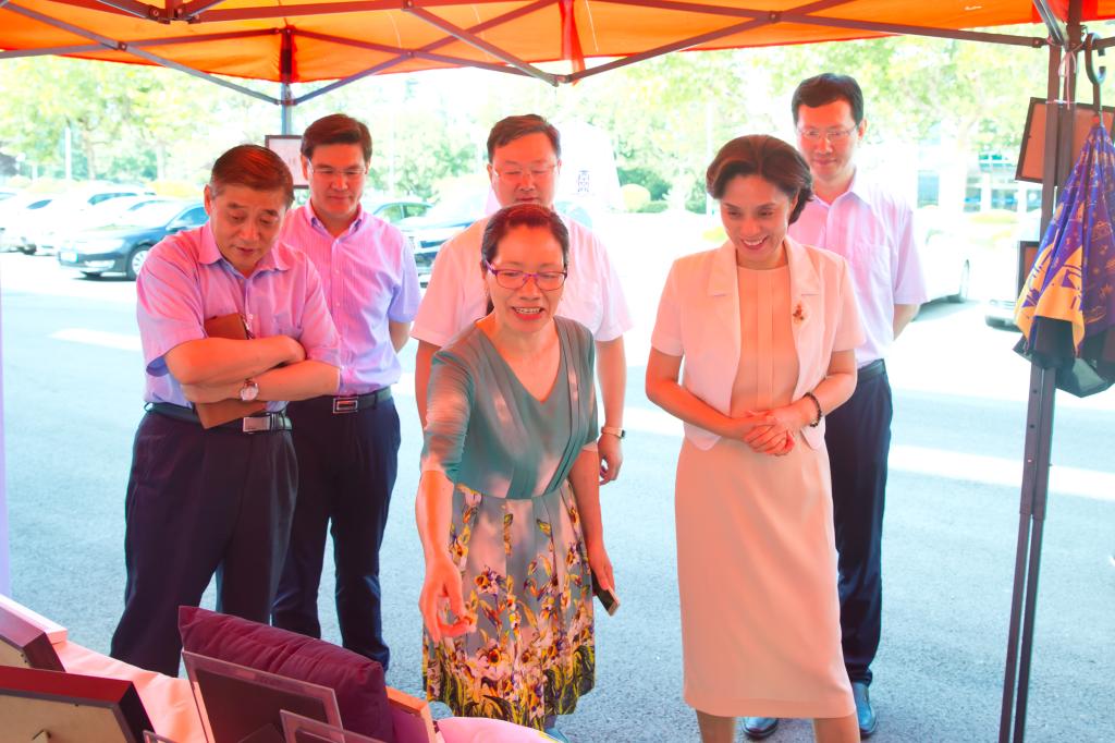 在启动仪式前,领导们和与会代表还参观了艺术学院师生设计作品展。一些企业对其中的作品产生了深厚的兴趣,表达了希望近期与学院洽谈合作开发产品的意愿。