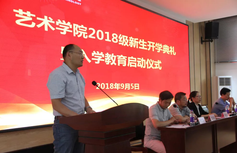 最后,艺术学院党总支副书记李春老师作入学教育动员讲话。他向同学们介绍了入学教育内容,对2018级新生们提出四点希望。他希望同学们能够学会读懂自己,尽快适应新环境,转变新角色,找准方向树立新目标。