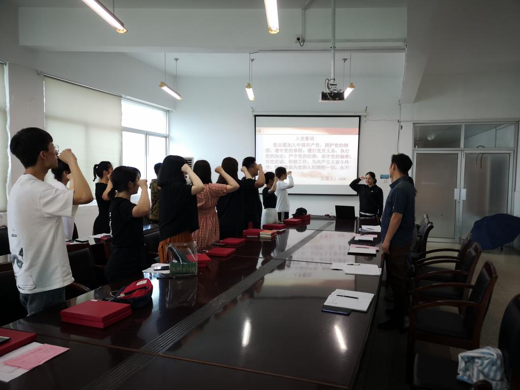 在庄严的国歌声中,活动拉开序幕。在团委副书记、学生第二党支部书记高慧的带领下,全体毕业生党员重温入党誓词,庄严宣誓。