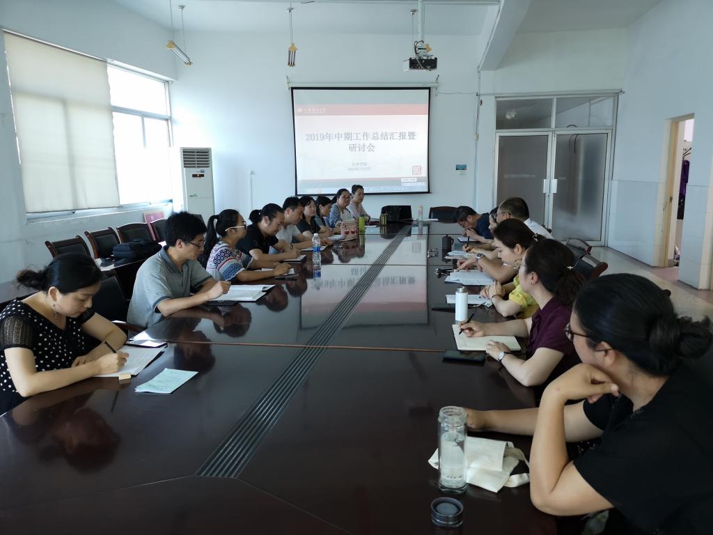 7月2日下午,我院在艺术楼409室召开2019年度中期工作总结汇报暨研讨会,会议由党总支书记李春主持,领导班子全体成员、各科室负责人、各系部和党支部负责人共同出席会议。