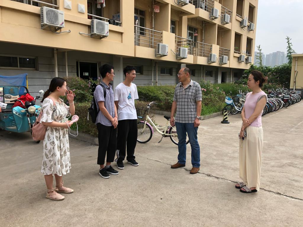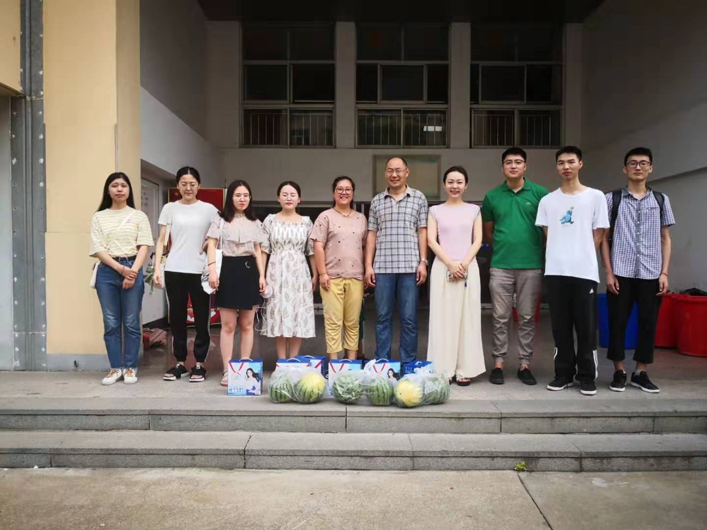 近日,连云港持续高温天气,为关心留校考研学生,7月25日上午,艺术学院党总支书记李春、副书记王琰、辅导员周冶、赵博为暑期留校考研学生送去了牛奶和西瓜等慰问品。