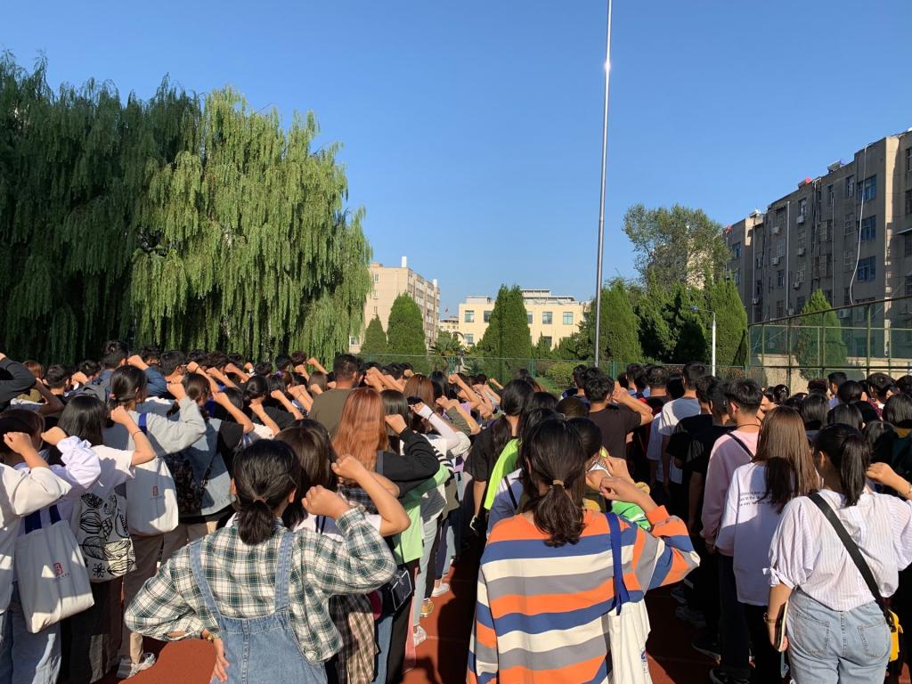 下午,艺术学院辅导员敖燕环老师带领全体2019级新生在国旗下整装肃穆,开展“铭记‘九一八’”主题宣誓活动。敖燕环老师向同学们介绍了“九一八”事变的历史,教育同学们勿忘国耻,理性爱国。她带领同学们面向国旗宣誓:不忘国耻,不辱使命;努力拼搏,奋发图强;努力学习,报效祖国!场面十分震撼,激动人心。