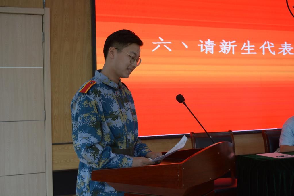 新生代表设计191班陈林泉发言,他希望新生们能够广泛参与学校的各项活动,积极进行社会实践,培养自己沟通、实践、创新、协调、管理等多种能力,全面发展。