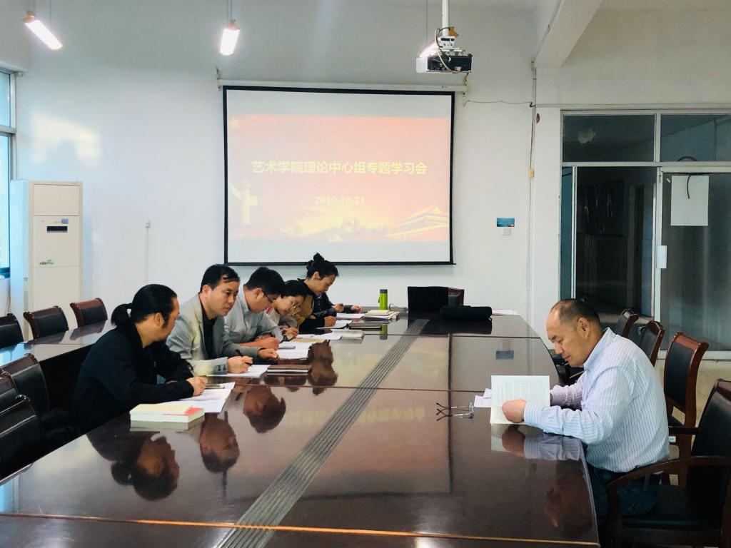 10月23日下午,艺术学院在艺术楼409会议室召开理论中心组专题学习会。会议由艺术学院党总支书记李春主持,学院党总支委员、全体党支部书记参加。