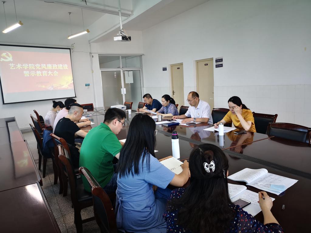 6月3日上午,艺术学院在艺术楼409室召开党风廉政建设警示教育大会。学院领导班子全体成员、总支委员、支部书记、系(室)主任参加会议。会议由党总支书记李春主持。