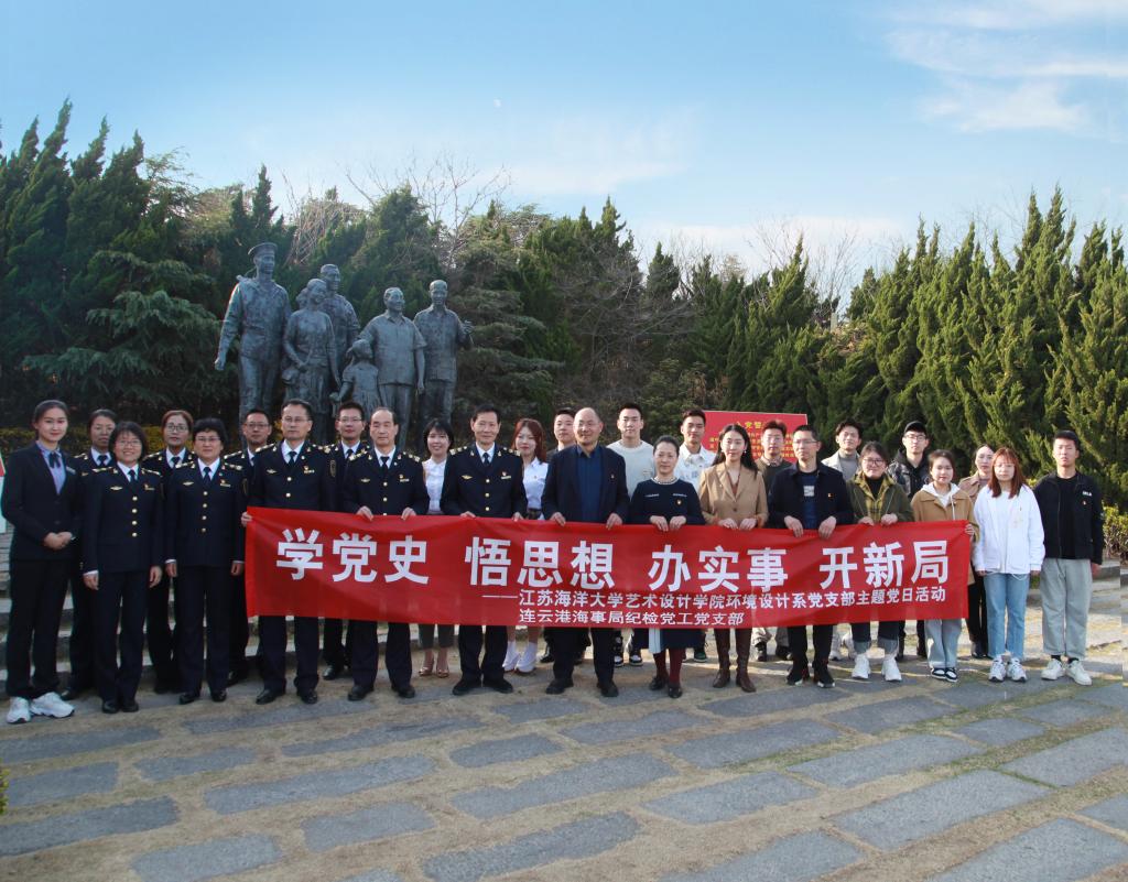 为深入开展党史学习教育,缅怀伟人丰功伟绩,深刻领悟伟人精神,3月24日下午,艺术设计学院环境设计系党支部联合连云港海事局纪检党工党支部以“学党史、悟思想、办实事、开新局”为主题开展联学共建活动,在邓小平纪念公园共同上了一堂生动的现场党课。