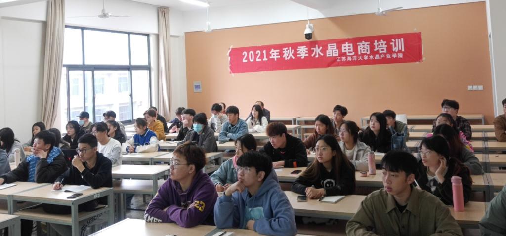 为深化校地合作与产教融合,切实加强学生实践创新能力和知识技能的培养,11月6日上午,江苏海洋大学水晶产业学院2021年秋季电商培训班在江苏海洋大学文华楼508教室正式开班,来自艺术设计学院、商学院、文法学院、外国语学院等相关专业的近60名学生参加了培训。