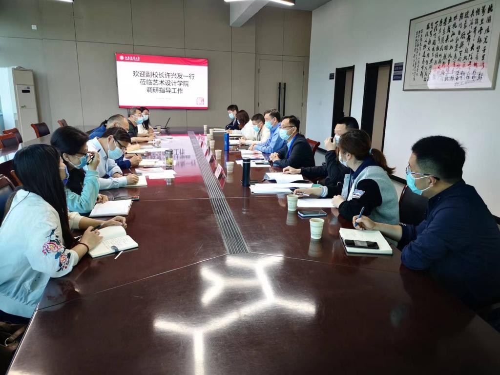 5月3日下午,副校长许兴友到学院调研指导研究生招生培养工作,党委研工部部长、研究生院院长陈书法等陪同调研,艺术设计学院领导班子成员,学院教学办、学工办有关人员参加会议。