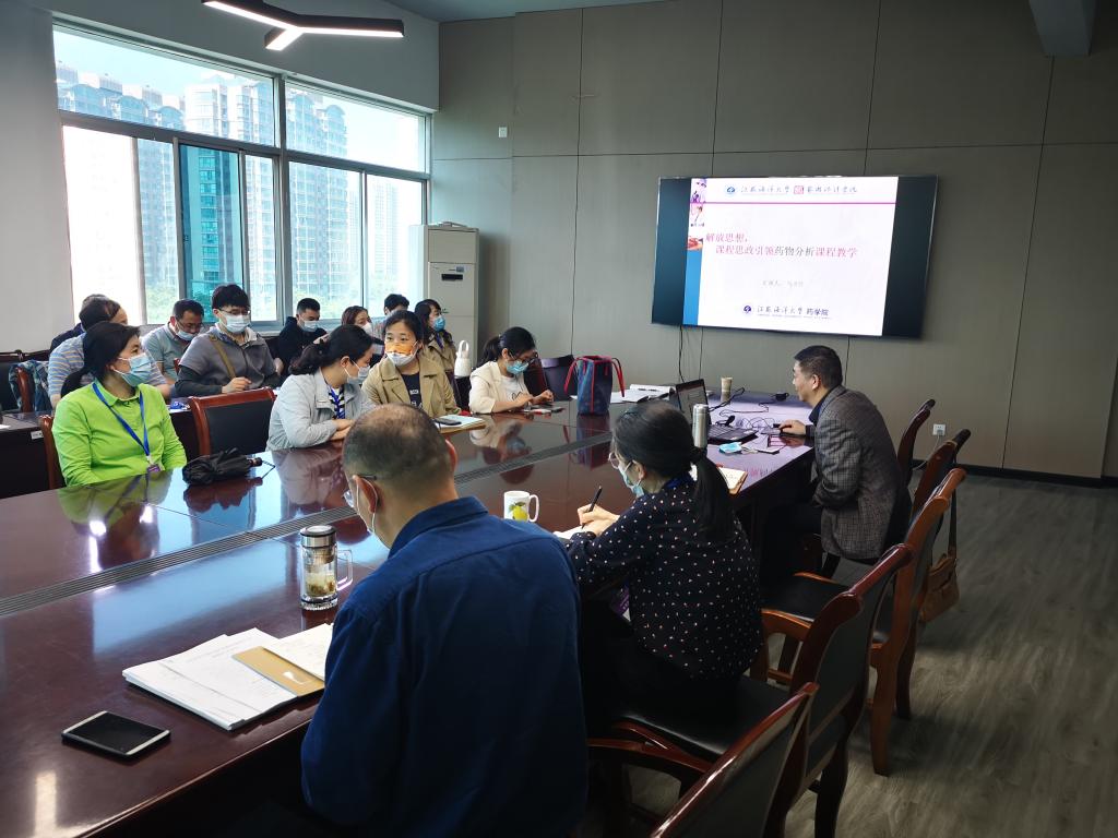 本次会议特别邀请了药学院马卫兴教授做专题分享,他以《药物分析》课程为例,从为什么、是什么、怎么做三个方面向与会教师重点阐释了课程思政建设的特色做法。随后,学院艺术基础教研室主任冯大康汇报了《设计素描》课程思政建设情况。他从该门课程改革的历史沿革切入,详细介绍了该门课程的特点、建设思路和创新举措。《设计素描》是2020年度校级课程思政示范课立项课程,现已结项。