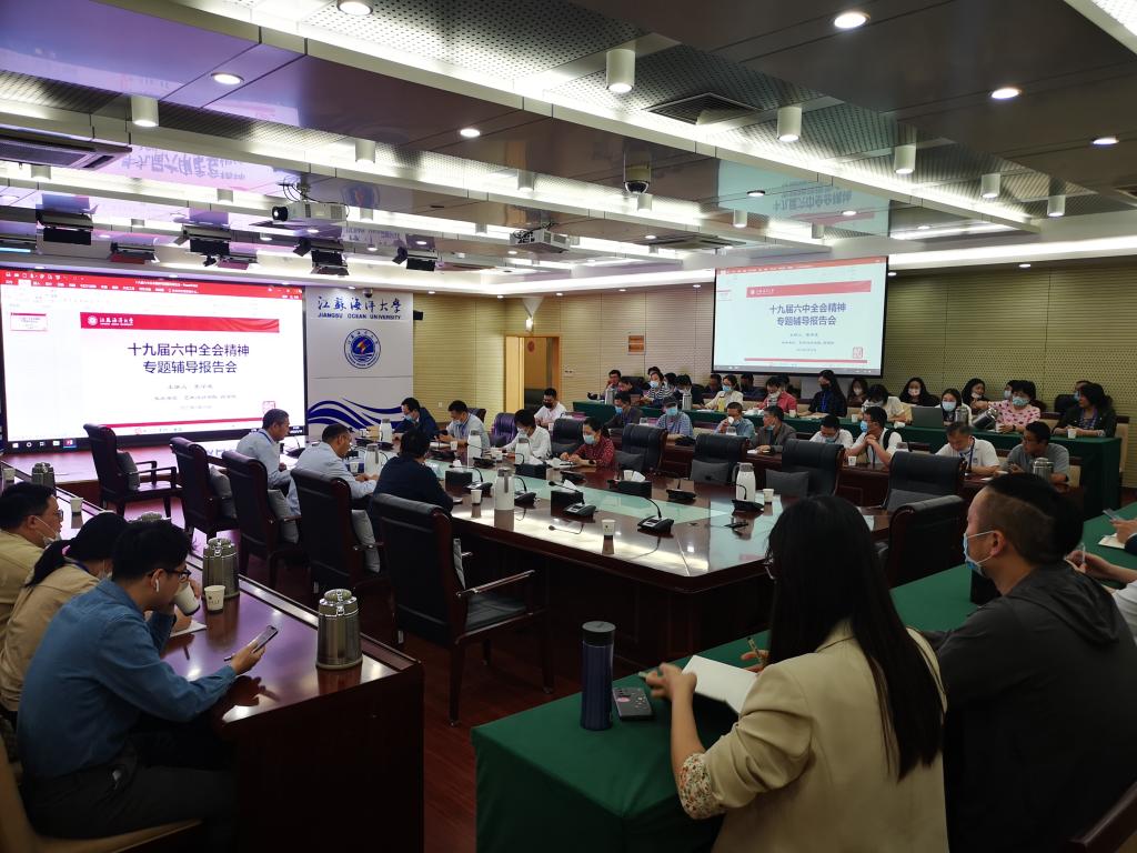 为进一步引导全体教职工深入学习党的十九届六中全会精神,把思想和行动统一到党中央决策和部署上来,5月19日下午,艺术设计学院联合药学院举办学习贯彻党的十九届六中全会精神专题辅导报告会,特邀马克思主义学院党总支书记张学武作专题宣讲,两个学院全体教师聆听了报告。