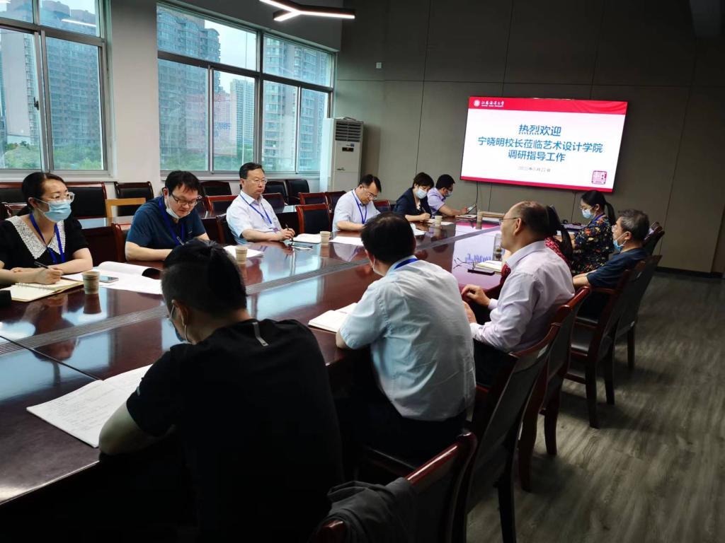 5月27日下午,校长宁晓明到艺术设计学院进行调研指导,校办、教务处、人事处、社科处有关负责同志陪同调研,学院领导班子、系(室)主任参加会议。