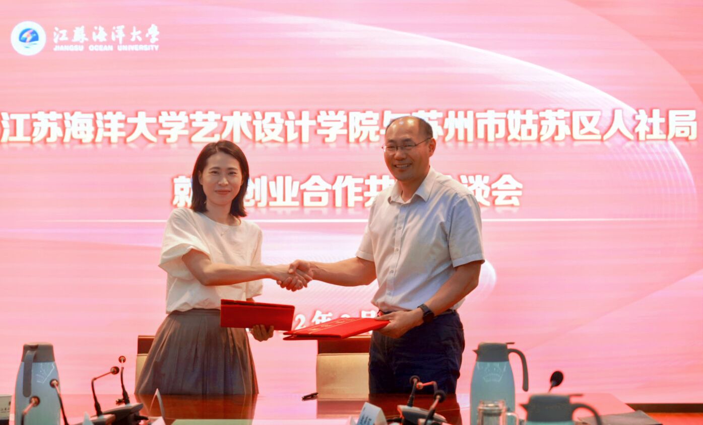 苏州市姑苏区人社局副局长薛梅介绍了姑苏区人社工作情况,她表示,作为全国首个国家历史文化名城保护区,姑苏区一贯重视文旅资源开发、文创产业扶持,具备良好的就业创业环境,姑苏区建立了一系列人才扶持政策与平台、设立“青年就业特快专列”,并与苏州当地高校一直保持有紧密的合作关系。薛梅副局长表示,江苏海洋大学艺术设计学院专业设置、产学研能力与姑苏区的发展定位较为契合,她希望双方在政校企合作、全链式就业体系完善、企业参与学校教学资源配置等方面加强合作。苏州市姑苏区沧浪街道副书记孙远介绍了街道基本情况和在文化创意项目推进、就业创业情况等方面的情况。
