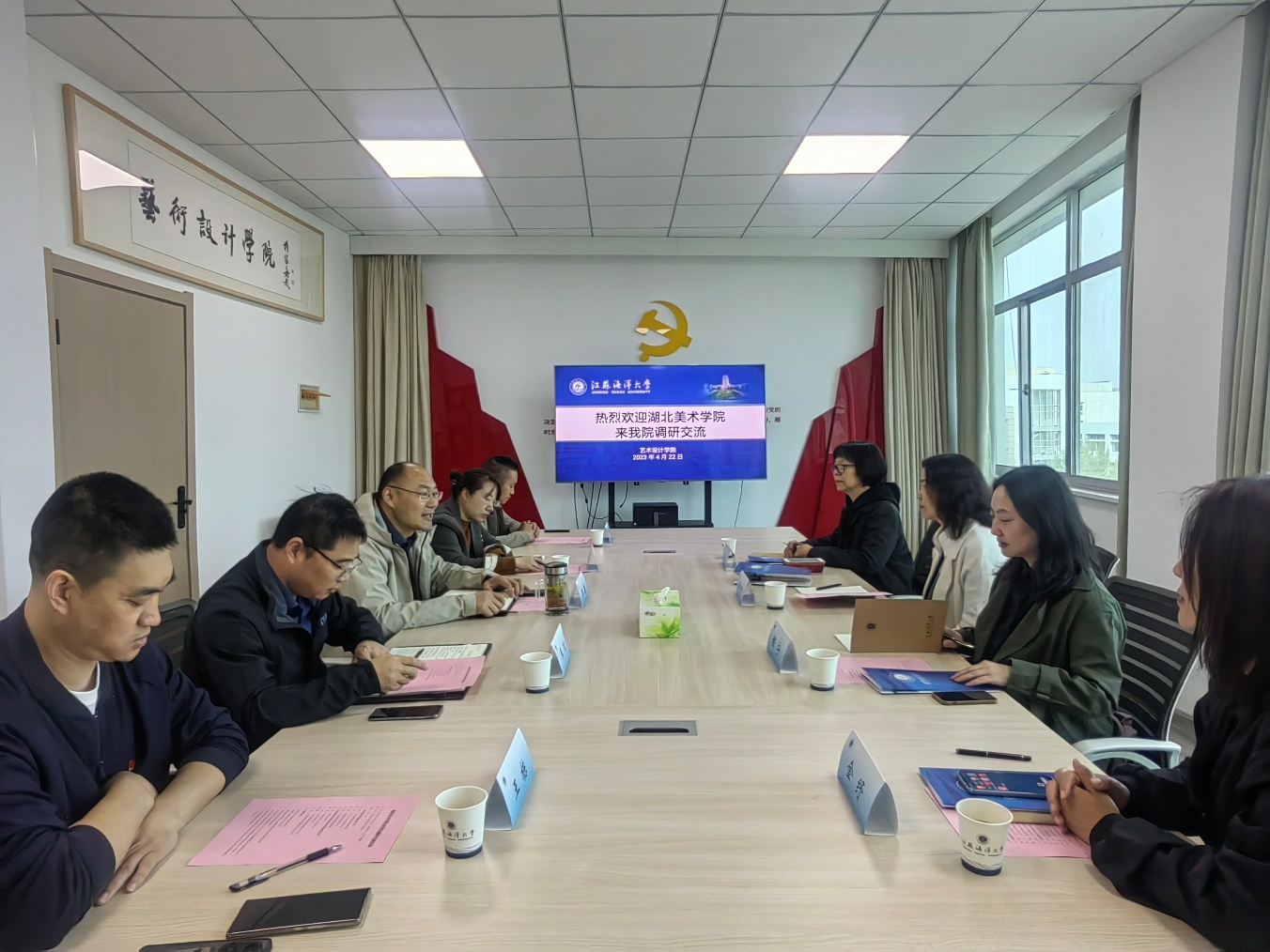 湖北美术学院艺术教育学院党委书记徐帆等对学院的接待表示感谢,她表示,江苏海洋大学艺术设计学院充分发挥身处综合性大学优势,在党建促进业务发展、跨学科融合、产学研合作、大学生创新创业等方面都取得了优异的成绩,希望通过此次调研交流,学习到更多工作开展的新思路。