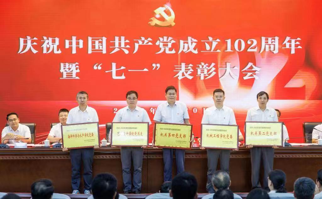 6月30日下午,学校在会议中心黄海厅隆重召开庆祝中国共产党成立102周年暨“七一”表彰大会,大会回顾建党的光辉历程,表彰先进典型代表,动员和激励广大党员干部为加快建设高水平应用研究型海洋大学、办党和人民满意的教育而努力奋斗。会议颁发了“光荣在党50年”纪念奖章,表彰了一批先进基层党组织、优秀共产党员、优秀共产党员标兵、优秀党务工作者和优秀纪检委员,我院党总支被授予“先进基层党组织”,党总支书记李春被授予“优秀党务工作者”称号。
