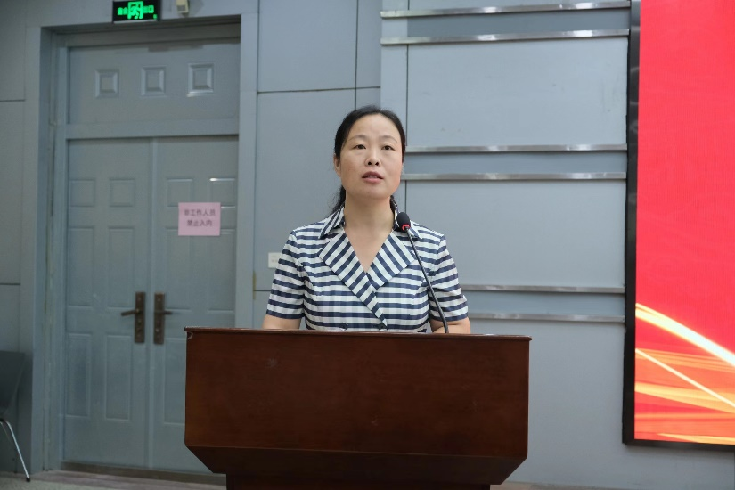薛建华老师作为教师代表发言,她代表学院所有教职工欢迎2023级新生入校,希望同学们能在未来的学习里不断向前,展现青春活力,同时在遇到困难时,不惧怕、不退缩,要竭尽全力去克服,就算失败了也没关系,重点是要勇于突破自我,而且老师们也会不断的在学习中给予同学们最大的帮助。