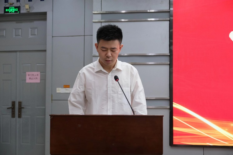 国家奖学金、省三好学生获得者张子恒同学代表老生发言,他以自己大学四年的各种经历以及三个感触告诉同学们,大学的学习生活是精彩,是有无限可能的,要不忘初心,奋力前行,同时也要勇于探索,勤能补拙,更要寻觅热爱,执着追求。