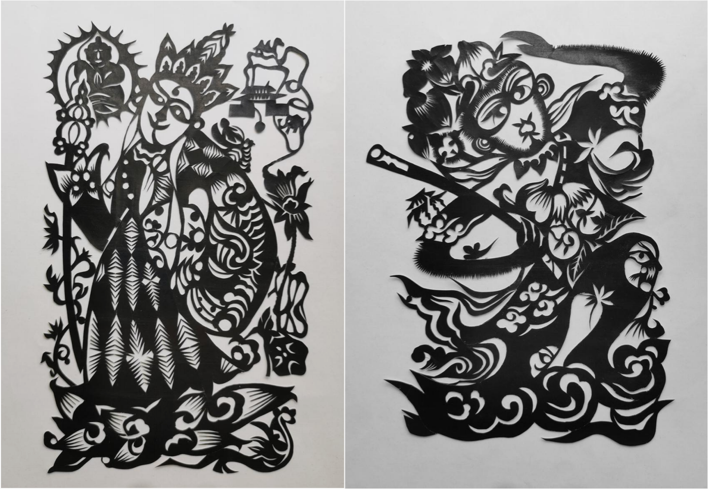 罗唯强剪纸艺术特点:在作品的剪法上突破了传统技法的对称、均衡和平面性,有意的引入了绘画技法的散点透视、轮廓线和明暗关系,同时又巧妙的保留了专用剪法的变形、夸张和装饰感,构思独特、装饰精巧、故事性强、文脉清晰,在不露痕迹中使一系列作品浑然天成,使观众看后回味无穷。