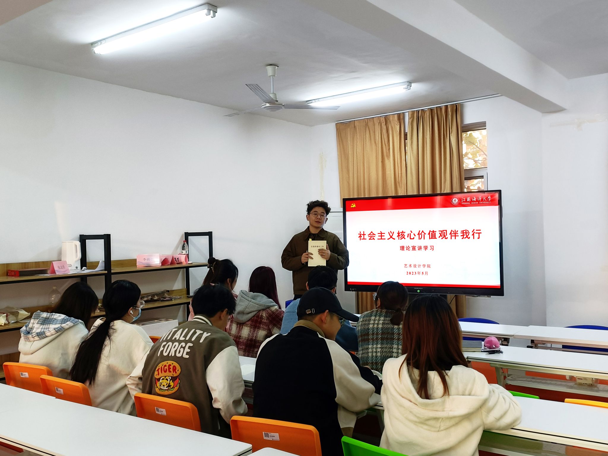 为持续深入推进大学生社会主义核心价值观教育,筑牢育人实效,5月24日,艺术设计学院在学生社区开展社会主义核心价值观理论学习,校辅导员宣讲团成员、信仰公开课青年讲师徐熙檳就《论党的青年工作》一书与学院学生干部代表、青年学生代表进行讨论与交流。