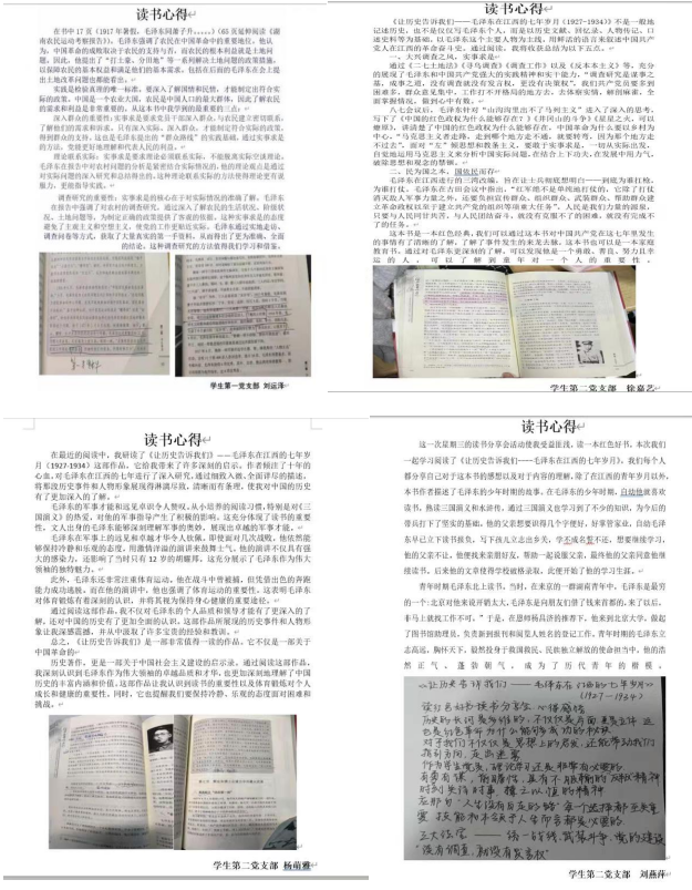 会上,学生党员根据自己的读书感受,从毛泽东的少年求学、博览群书、武装斗争、深入群众、调查研究以及老一辈无产阶级革命家宝贵的精神品质、坚定的理想信仰、强烈的责任担当等方面进行分享,并结合自己的学习、工作、生活以及个人成长经历,真实流露出对革命先辈、革命烈士的敬仰、怀念之情,真切感受到中国共产党的初心和使命。学生党员还对照书籍查找自身存在的缺点和不足,寻求改正方法。学生党员汇报分享结束后,与会老师也分享了自己阅读的体会。朱校长认真听取了每位同志的心得体会,并不时结合书中所叙进行指导与点评。