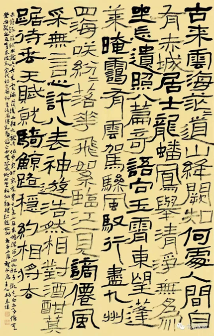 汉字书法为中国文化的独特表现艺术,被誉为:无言的诗,无形的舞;无图的画,无声的乐。此次展览将集中展示杨嘉伟老师书法等作品80余幅,其中既有名人名言摘抄,也有作者本人的创作诗句。这80余幅书法作品,是杨嘉伟近年来赓续传统、创新实践的最新成果展示。主体作品为杨嘉伟老师用汉代隶书风格创作的梁启超《少年中国说》全文,作品由48个高180cm、宽49cm的条屏组成。一眼望去,整齐划一,庄重典雅,静穆豪迈,大气磅礴,给人以强大的艺术冲击力和审美体验。朴拙大气的汉隶笔调中亦可见巧思性情之处,将隶书结体之宽博开张,用笔之刚柔并济,章法之霞舒云卷表现得淋漓尽致。