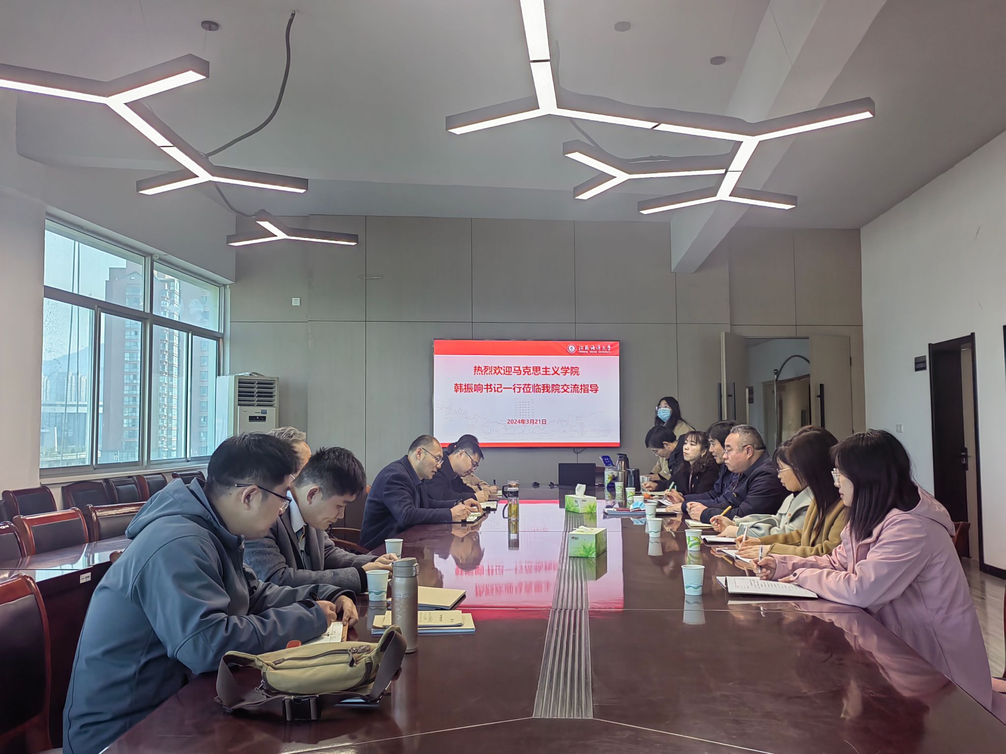 为深入学习贯彻习近平新时代中国特色社会主义思想和党的二十大、二十届二中全会精神,不断提升基层党建工作水平,3月21日上午,马克思主义学院党总支书记韩振响一行到我院就党建工作进行交流,院党总支书记李春、党总支副书记王欢、教师党支部书记代表等参加交流会。