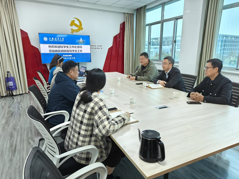 11月11日,校学生工作处处长陈德翼、副处长张岳、心理中心李耀宗老师一行到我院就大学生心理健康教育工作开展调研指导,院党总支书记丁兆奎、副书记王欢、学工办副主任敖燕环、辅导员王雪梅参加了交流。