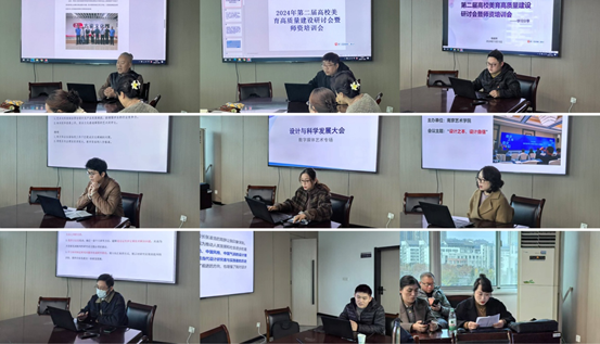 交流活动中,冯大康老师汇报了赴深圳大学海洋文化艺术中心、海南热带海洋学院创意设计学院调研交流情况,他通过深入剖析海洋文化在艺术教育中的独特应用及其与学术研究的结合经验,分享了在海洋文化、艺术教育、专业发展等领域的创新做。冯韬和杨建辉两位老师分享了参加“第二届高校美育高质量建设研讨会暨师资培训会”的相关内容,他们结合高校教学实际,详细解读了美育教学改革的方向,并分享了课程思政与美育融合的典型案例,提出了提升高校美育师资建设的创新思路。李美童老师结合参加南京工业大学“艺术的数智化应用人才培养项目”的经验,分享了艺术与科技专业相关内容,展示了项目学员的创作成果,并探讨了艺术在数智化时代的多元发展方向。闵元元老师汇报了设计与科学发展大会数字媒体艺术平行论坛关于数字媒体艺术发展的前沿观点。吴静老师结己参与环境设计平行论坛的收获,提出艺术设计的目标正从“创造美”向“结合科技解决实际问题”转变的趋势,激发了教师们的深刻思考。徐广飞老师分享了参加国际化拔尖创新人才培养暑期科研实地项目的心得,深入探讨了策展及策展人在新时代的职责,指出策展人不仅需要关注艺术本体,还应主动探索艺术与时代、世界的关系。朱琳老师则结合参加设计与科学发展大会产品设计平行论坛的经历,以“设计革新:从制造到智造的提升引擎”为主题,分享了他的学习与体会,为学院产品设计专业方向的优化提供了新的启示。仪秋红老师结合参加南京艺术学院数字艺术学院“艺术进化论”会议的经历,分享了人工智能在数字艺术中的深刻变革:“艺术品可以被AI模仿,但艺术不能”,呼吁创作者与设计师在人工智能时代应发挥主导性与引导性作用,为艺术教育注入新动力。