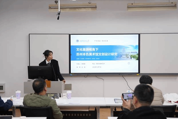 论坛邀请了北京交通大学、南京师范大学、南京艺术学院、燕山大学、江苏大学、江苏海洋大学、江苏省农业农村厅等多位江南乡村物产产业协同发展研究领域专家教授作主旨报告。大会开设一个主论坛和两个分论坛,我校院王栋老师应邀出席并作主题为《修辞手法在地方品牌设计中的应用》的论坛主旨报告,2023级艺术设计硕士研究生李柳萱受邀在分论坛Ⅱ作主题为《文化基因视角下苏州本色美术馆文创设计研究》的汇报分享。
