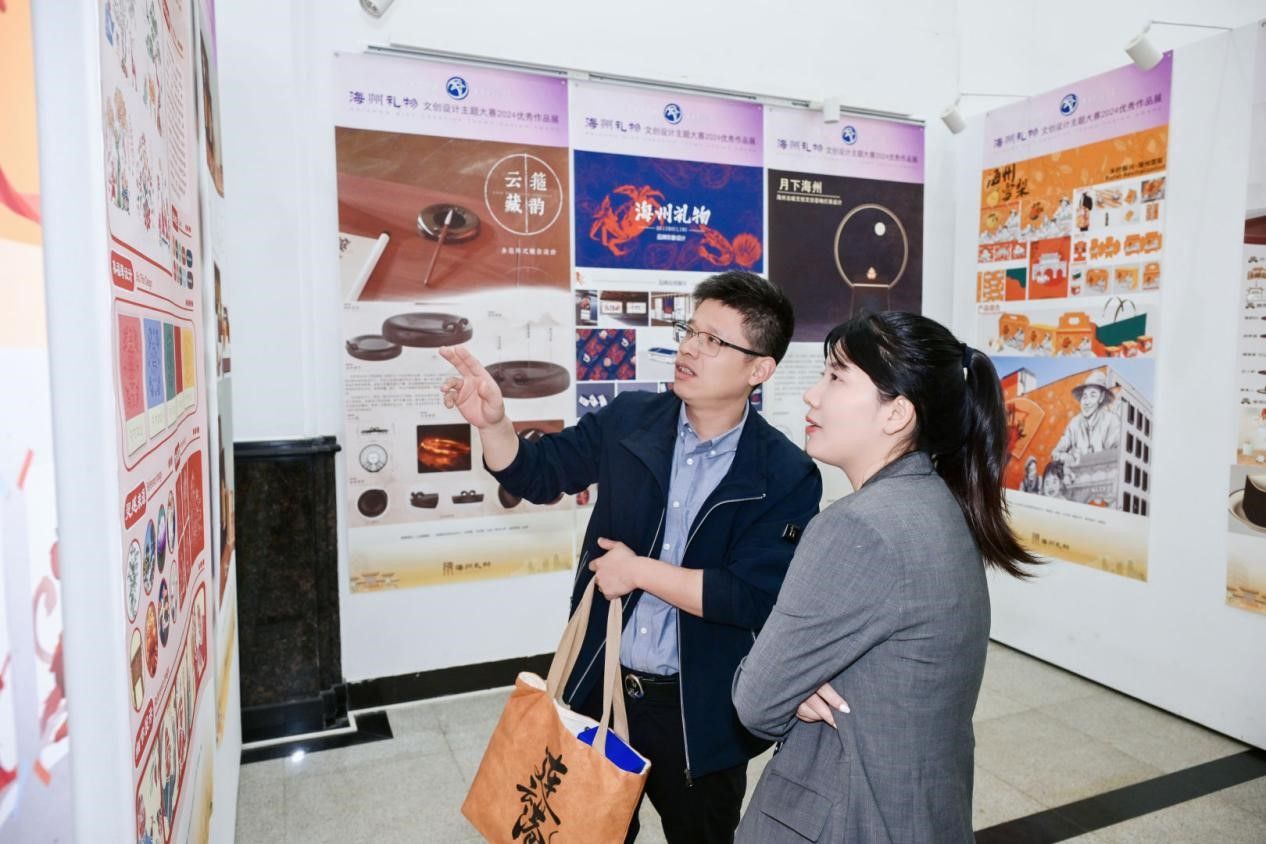 本届大赛的110余件优秀作品于江苏海洋大学艺术展览馆展出,并邀请获奖作者现场介绍产品及创作思路分享、设计师履历、代表作、设计理念及作品灵感来源。其中,部分优秀作品还将通过江苏海州文旅集团进行创新孵化,开发海州特色文创产品,作为城市伴手礼进入市场。