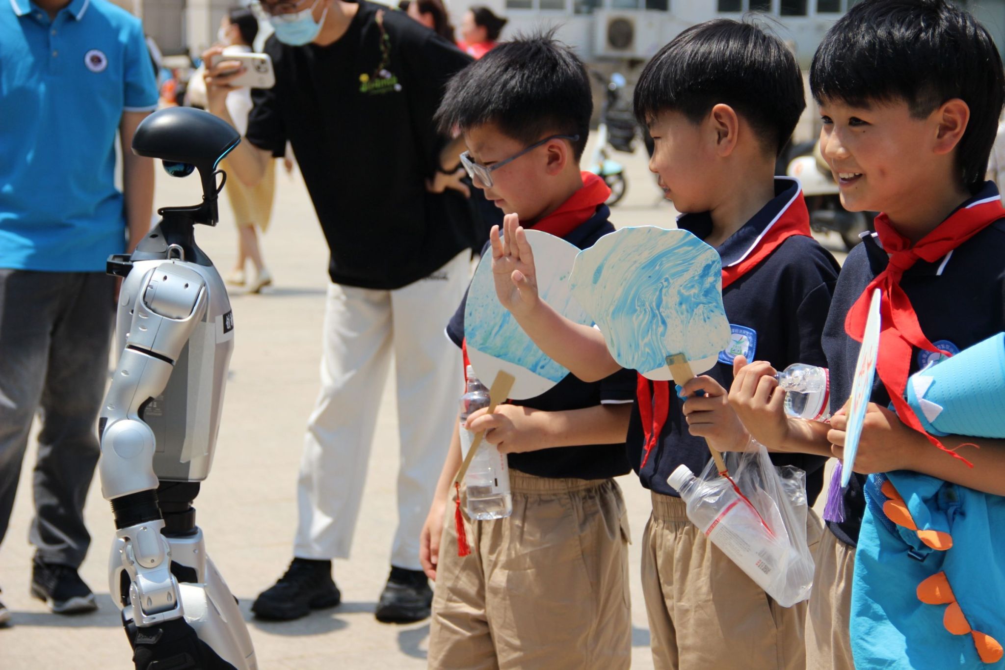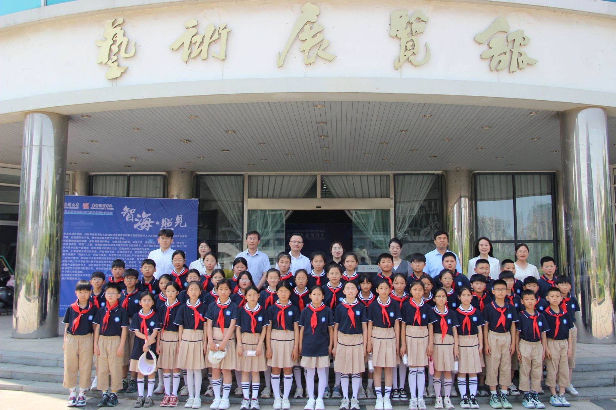 启动仪式当天,学院还联合连云港赣榆海洋经济开发区小学开展“童心向海 海大逐浪”主题研学实践活动。师生代表一行五十余人参观学院毕业设计主题展览,感受设计魅力,激发创新思维;在校海洋嘉年华展示现场,海洋小学学生踊跃参与各项体验活动,参观非遗海洋文化展、海洋生态环保展、制作海洋创意主题作品、体验AI技术融合具身智能发展;在校海洋馆,小学生徜徉在蔚蓝世界,探索海洋奥秘;师生一行还在学生志愿者带领下参观了学校校园。