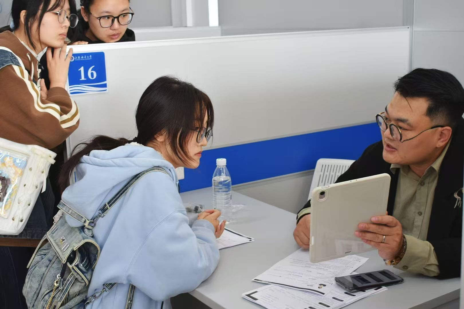 2025年11月12日下午,江苏海洋大学苍梧校区东区筑海楼二楼就业大厅内热潮涌动、气氛热烈。由我校招生与就业处主办、艺术设计学院承办的“创‘艺’未来,职因有你”2026届毕业生秋季专场招聘会在此盛大启幕。