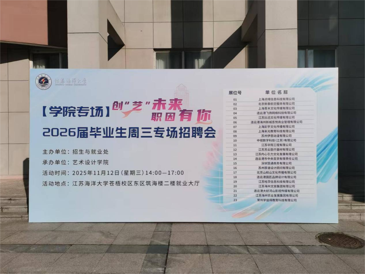 就业是民生之本,就业帮扶是暖心之举。为切实做好学院毕业生就业服务工作,11月12日,艺术设计学院团委在江苏海洋大学苍梧校区东区筑海楼2楼就业大厅,扎实开展就业帮扶“送岗直通车”专项行动,以精准对接、暖心服务、务实举措,为全院学子保驾护航,助力青年学子逐梦职场、扬帆起航。