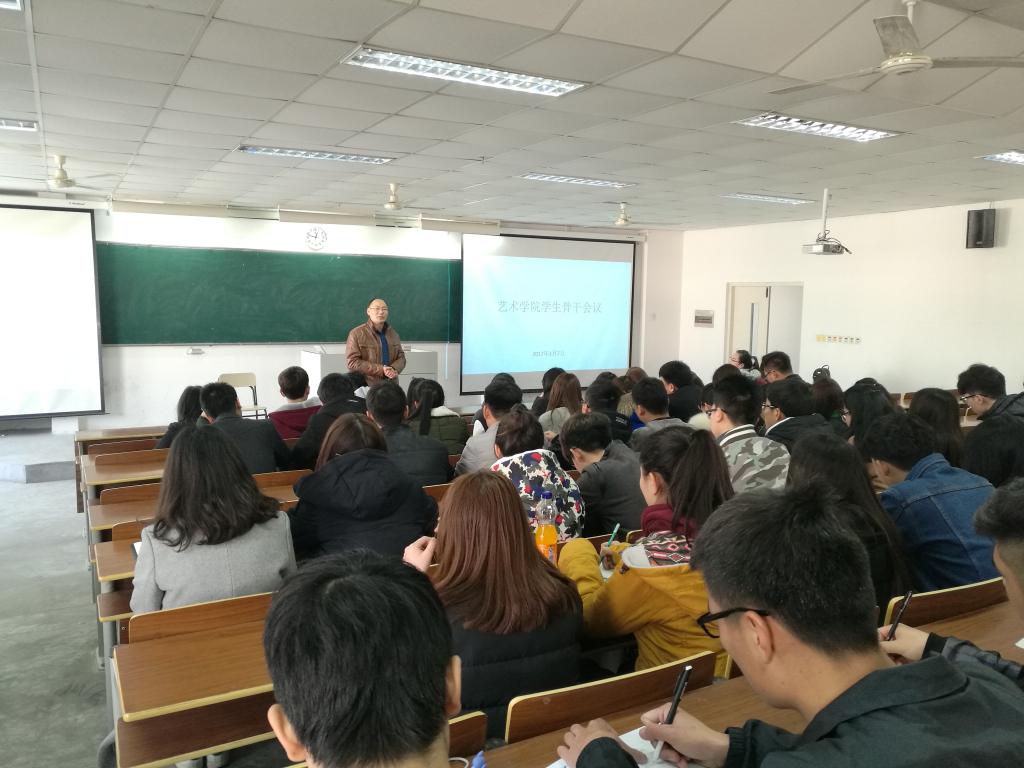 3月7日中午,艺术学院在通灌校区TZ310教室,召开了艺术学院全体学生骨干会议。参加会议的有院党总支副书记李春、王智金,辅导员英启琛、高慧。