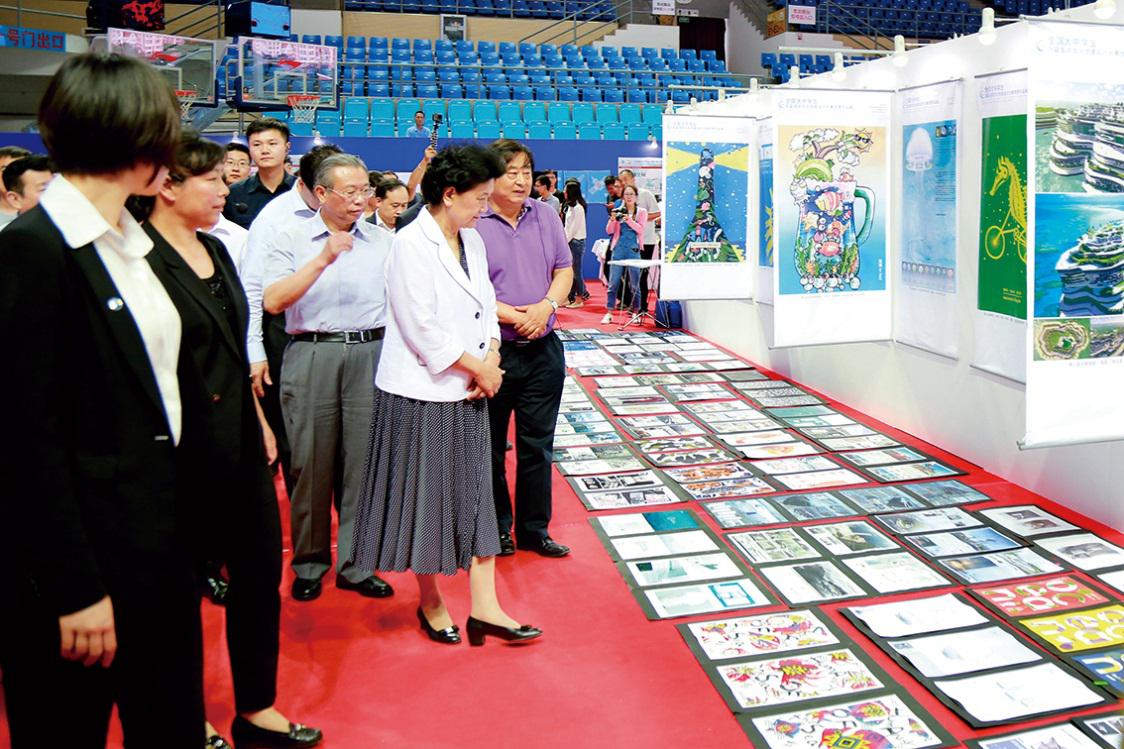 6月5日,中共中央政治局委员、国务院副总理刘延东参观全国大中学生海洋文化创意设计大赛历届优秀作品展