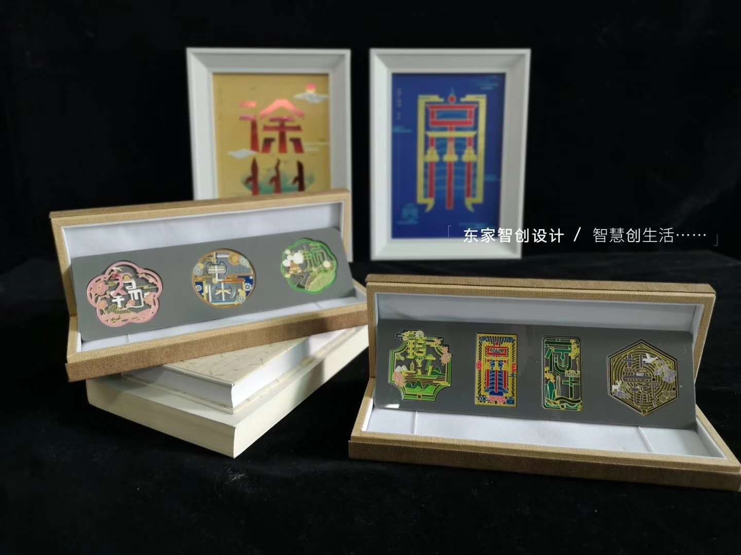 《文润江苏》作品是以江苏海洋大学黄转男的一套名为《润泽江苏》的毕业设计为灵感,采用其中江苏省13个地级市的字体海报为元素,创作出一个个崭新的作品。本土文化也是制作文化创意产品的重要依据之一,《润泽江苏》取义便是整个江苏的水文化,以“水韵江苏”为设计宗旨,契合了大运河文化。本土文化不仅体现于此,在将《润泽江苏》的平面作品制作成“文润江苏”产品时,工作室的成员们一遍遍打磨,制作成带有13个地级市的市花、具有城市特色的字体的书签、冰箱贴、旅行箱等各类生活必需文创产品。透过“文润江苏”的书签,正面包含了每一个带有城市标志性的“打卡点”、市花,从背面看采用的是苏州园林的窗户样式,透过窗户,能看见每一个城市的魅力,感受江苏省13市的独特韵味。