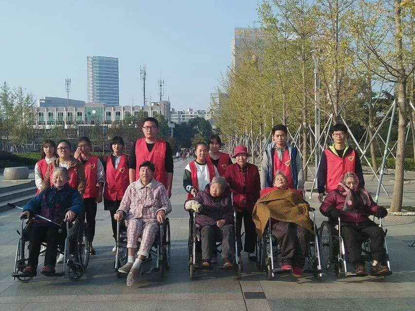 老年公寓在一条小巷子里,两层小楼。到达老年公寓后,首先志愿者们到达老人住的地方,帮老人们收拾屋子。然后,志愿者们推着几位老人去广场散心。在去广场的过程中,当其中的一位老人感到手凉时,周晨香同学急忙脱下毛衣,为老人盖上。回去的路上,老人跟同学们有说有笑,有了志愿者一行人的陪伴,老人们格外开心。