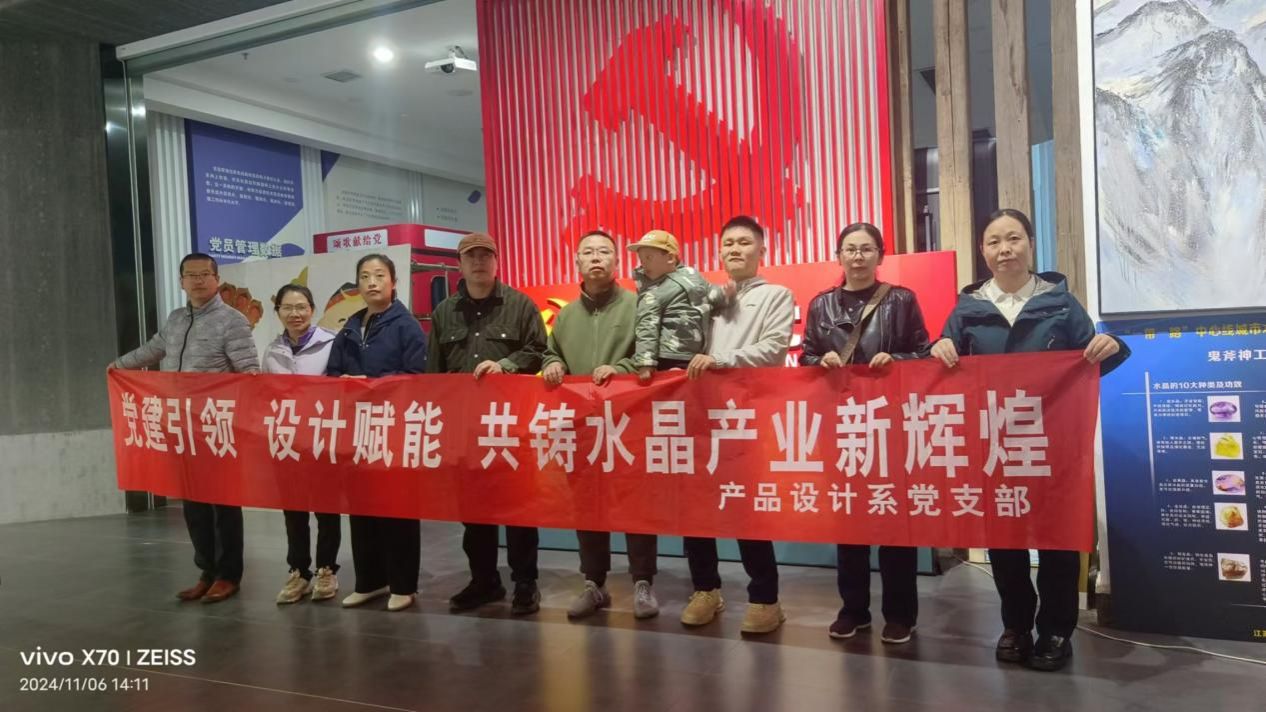 11月6日,产品设计系党支部组织全体党员前往本地知名的古凡水晶公司,开展了一场别开生面的“党建引领,设计赋能,共铸水晶产业新辉煌”主题党日活动。本次活动旨在通过党建与产业的深度融合,探索设计创新在水晶产业发展中的新路径,助力水晶产业转型升级。