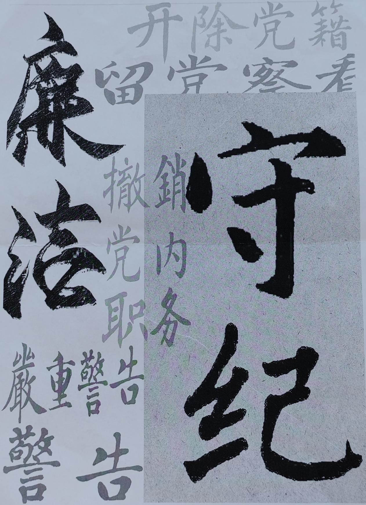 通过支部组织的《中国共产党纪律处分条例》集体学习,学生党员们对党规党纪有了较为深刻的认识和理解,在此次主题党日活动中,他们充分运用专业特长,以海报、绘画、书法等形式展现党纪学习教育相关学习成果。