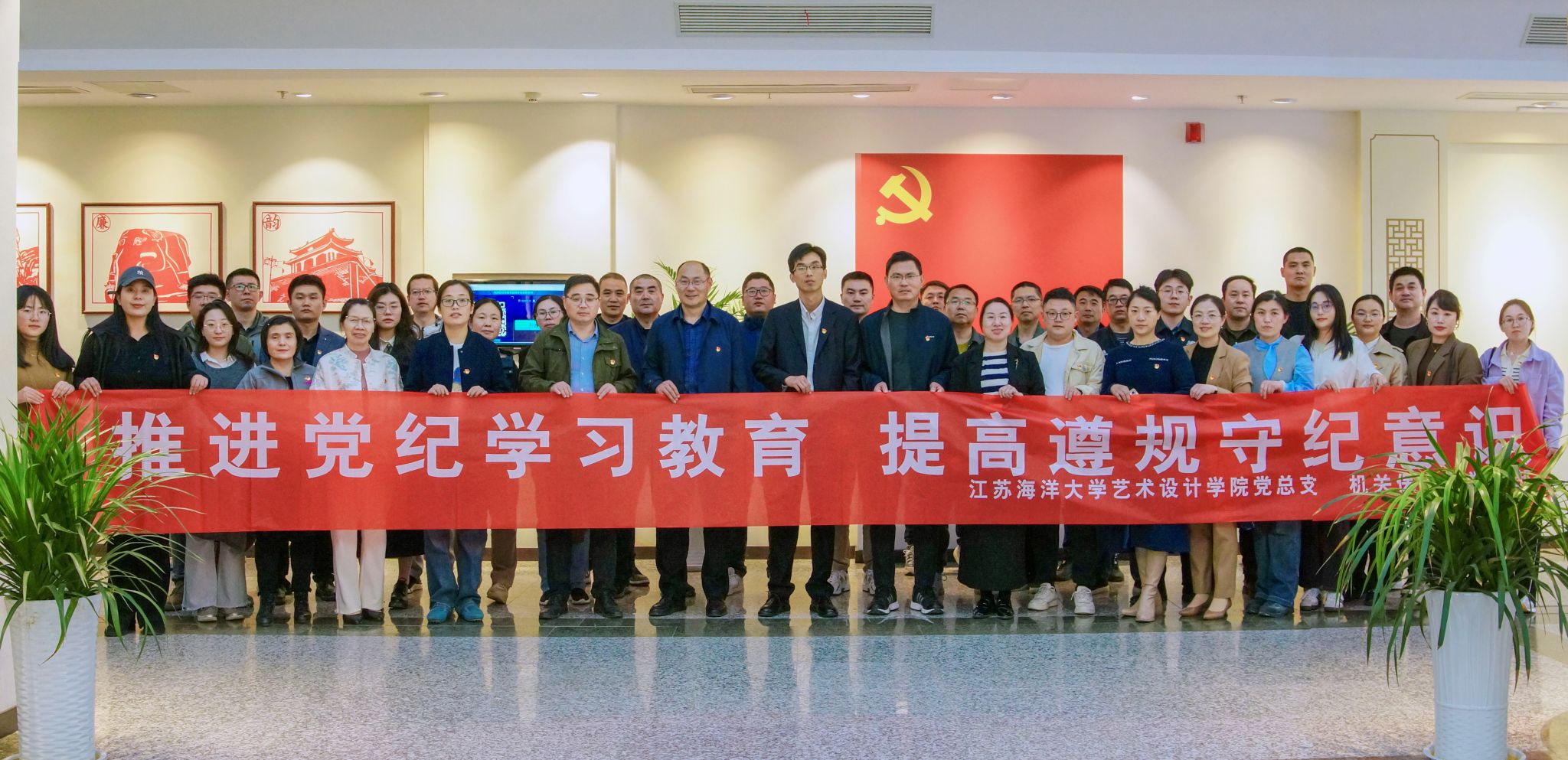 为深入学习贯彻习近平总书记关于党纪学习教育的重要指示精神,落实学校党委关于在全校党员干部中开展党纪学习教育实施方案,4月24日下午,艺术设计学院党总支、机关保卫处党支部赴海州区法纪教育基地联合开展了“推进党纪学习教育,提高遵规守纪意识”党纪教育主题党日活动,艺术设计学院教师党员、研究生党员、保卫处教师党员等40余人参加。