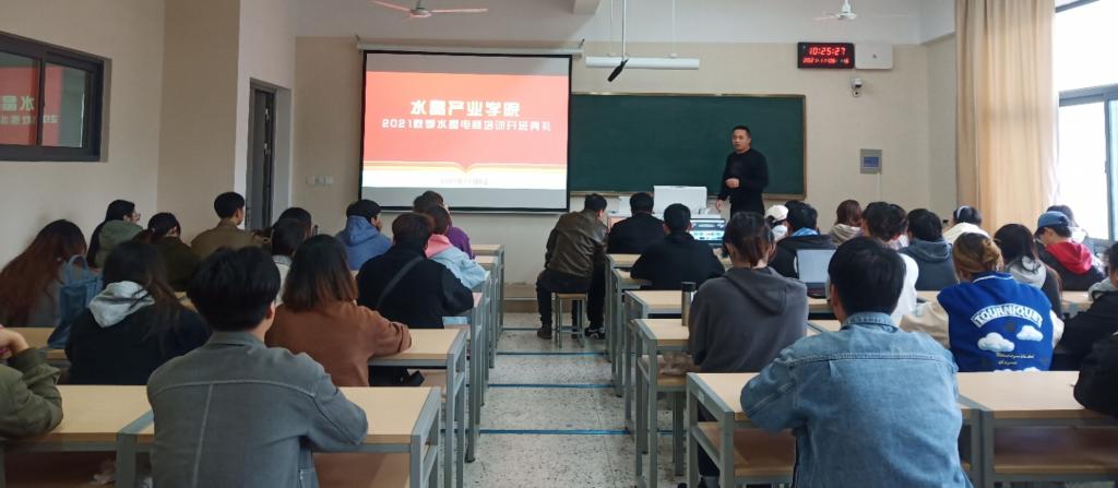 为深化校地合作与产教融合,切实加强学生实践创新能力和知识技能的培养,11月6日上午,江苏海洋大学水晶产业学院2021年秋季电商培训班在江苏海洋大学文华楼508教室正式开班,来自艺术设计学院、商学院、文法学院、外国语学院等相关专业的近60名学生参加了培训。