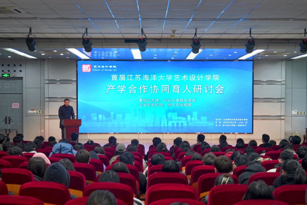 为加强产学合作,深化校企交流,培育深谙市场需求的优秀设计人才,实现艺术设计理论与实践有效融合,3月22日,我院联合连云港市11家企业举办了学院首届“产学合作协同育人—暨校企共建、毕业生直招交流会”,会议邀请了江苏鸿奥信息科技有限公司总经理祁大庆、江苏中舸建筑设计有限公司总经理焦飞、连云港全盛装饰工程有限公司总经理张义等十余位连云港市优秀企业家代表与会。学院领导班子成员、环境设计系全体师生参加了会议,副校长朱国军也莅临现场进行指导。